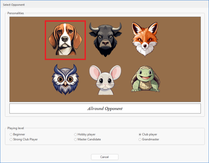 Click on any of the opponents. These opponents set the level of difficulty should you want to continue playing against the computer - but we are just training on a line so it does not matter.