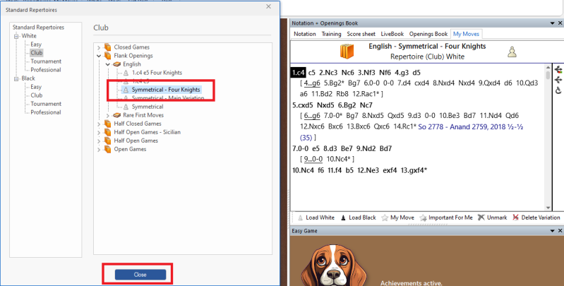 Observe the moves for the opening are displayed in the My Moves window