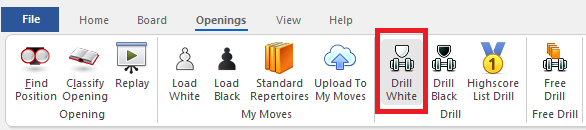 If Drill White/Black is not in the menu, go back to Step 1. You must open Fritz using the Easy Game option.