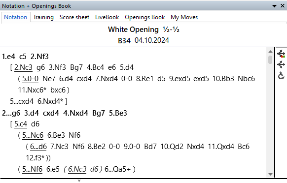 Notice the opening has the asterisk * next to the moves